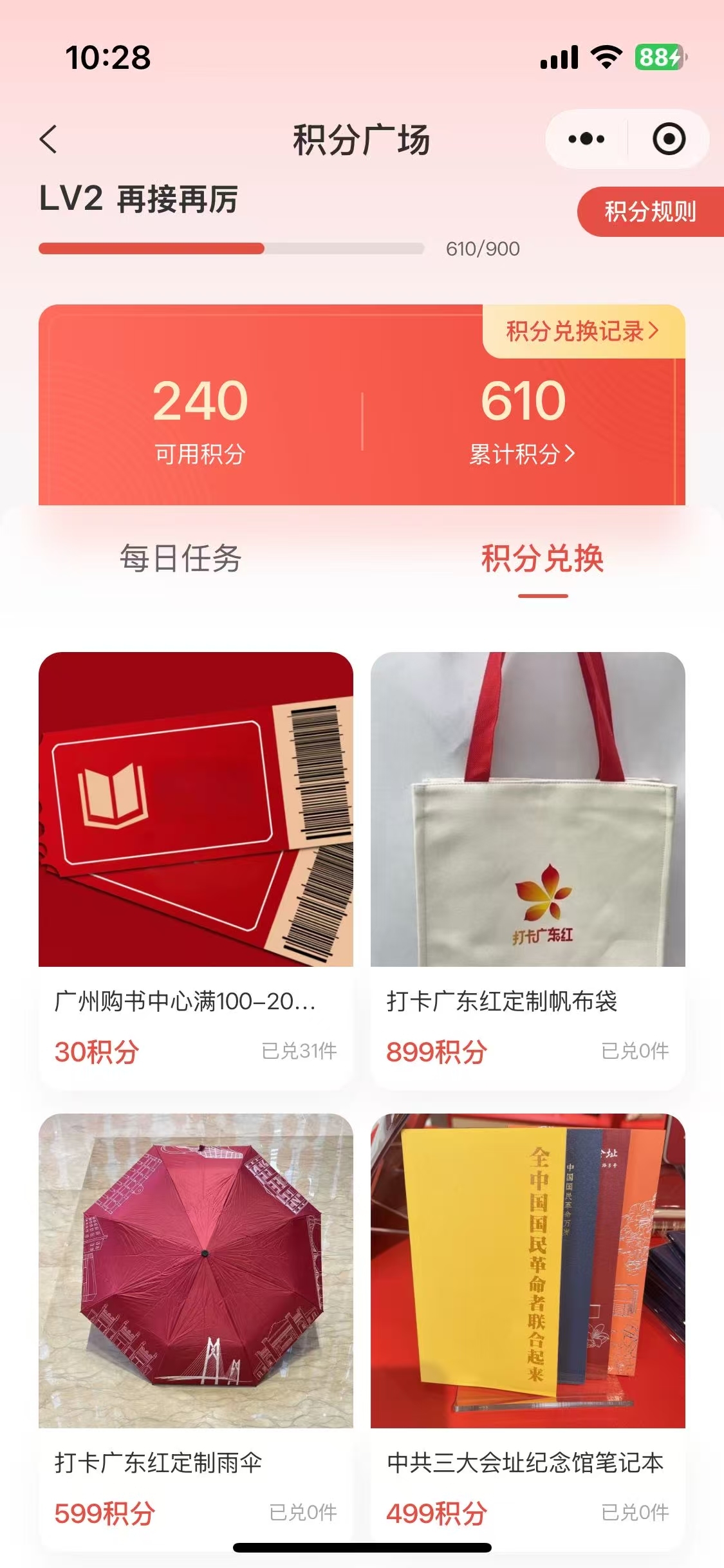 积分兑换页面。