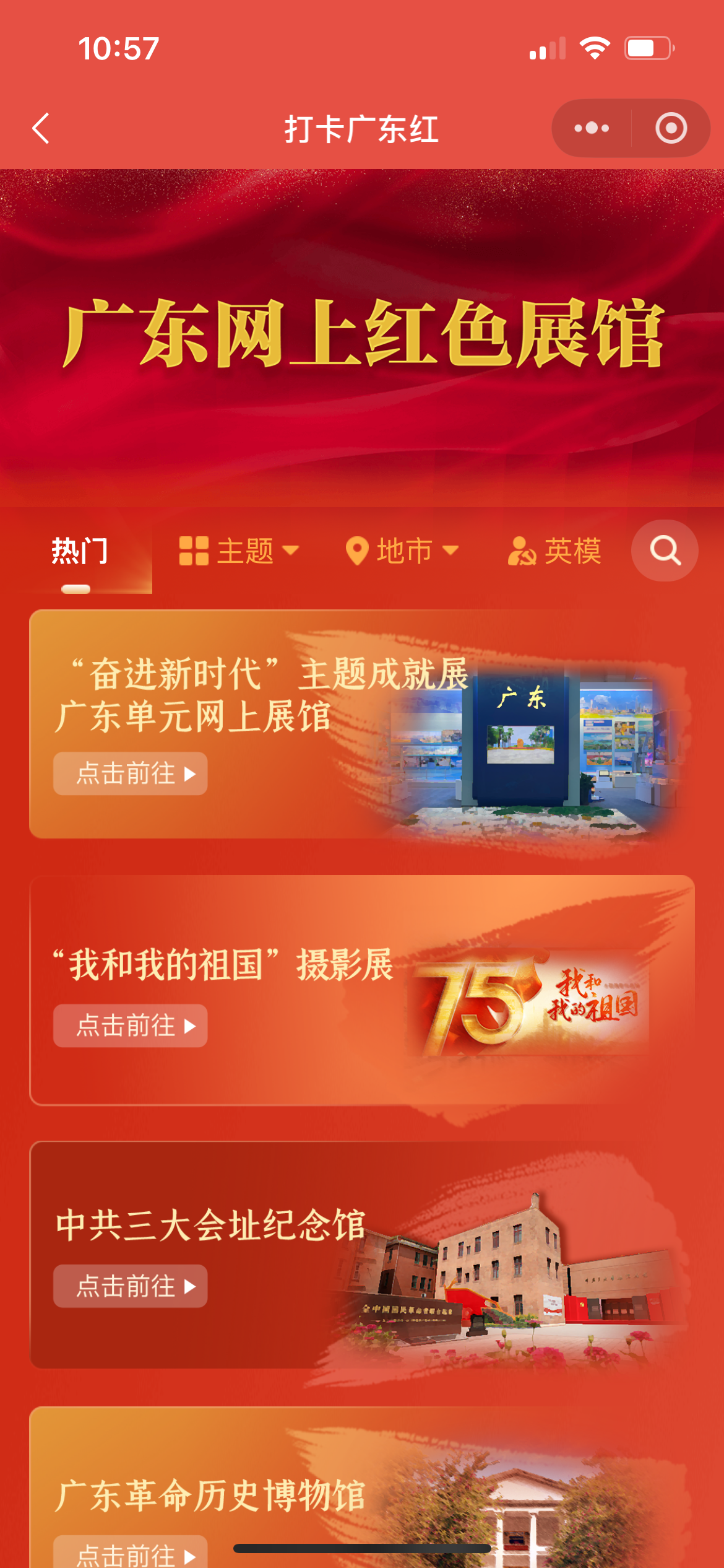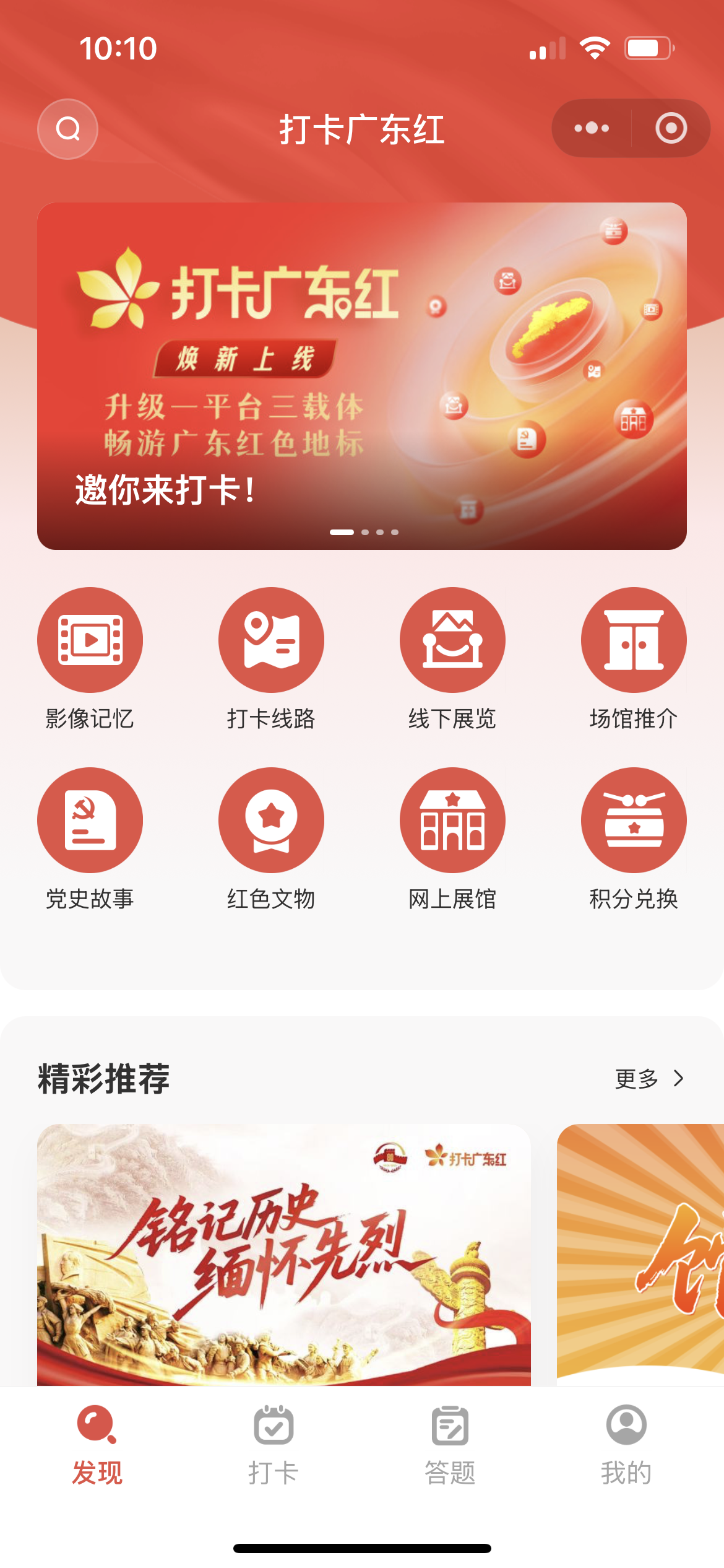 打卡广东红平台3.0升级版汇聚了全省最新红色资源,设置“影像记忆”“打卡线路”“线下展览”“场馆推介”“党史故事”“红色文物”等内容栏目。