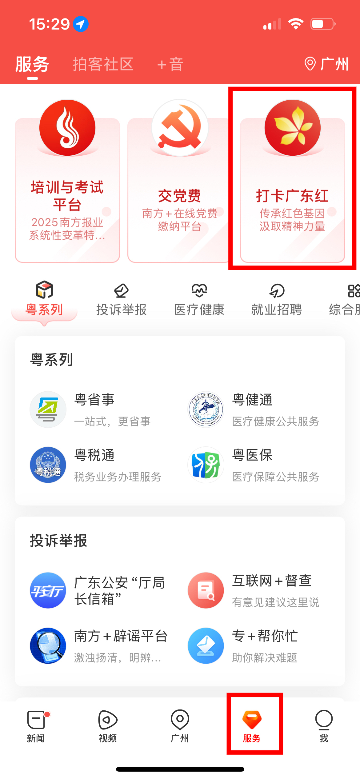 打卡广东红平台主页。